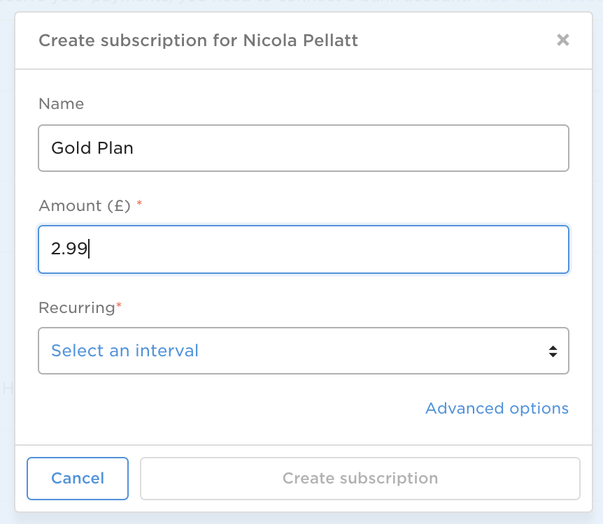 Geben Sie den Namen und den wiederkehrenden Betrag ein, der eingezogen werden soll.