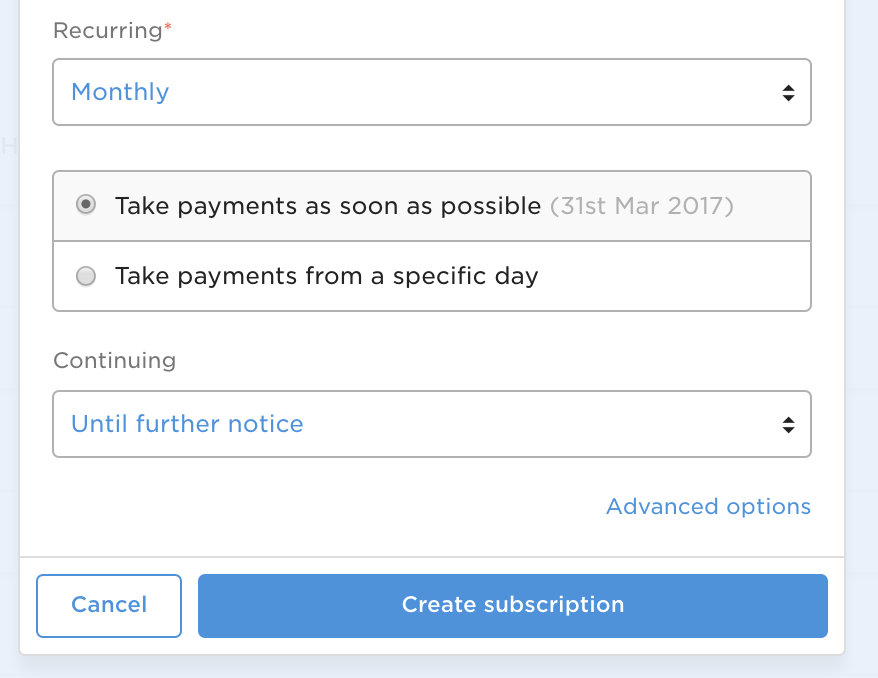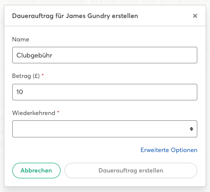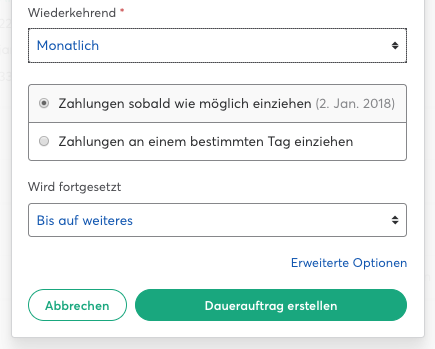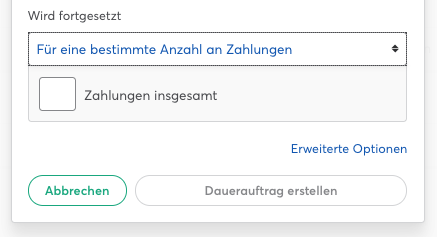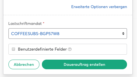 Es gibt zwei optionale Erweiterte Optionen, die Sie hinzufügen können, bevor Sie auf Dauerauftrag erstellen klicken: