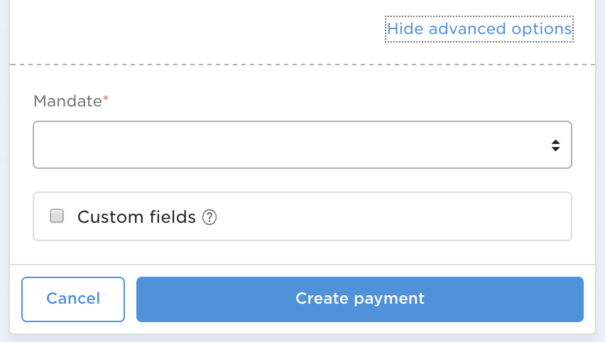 Mit der ersten Option, Lastschriftmandat, können Sie wählen, welches Lastschriftmandat Sie verwenden möchten, falls der Kunde mehr als eines hat.