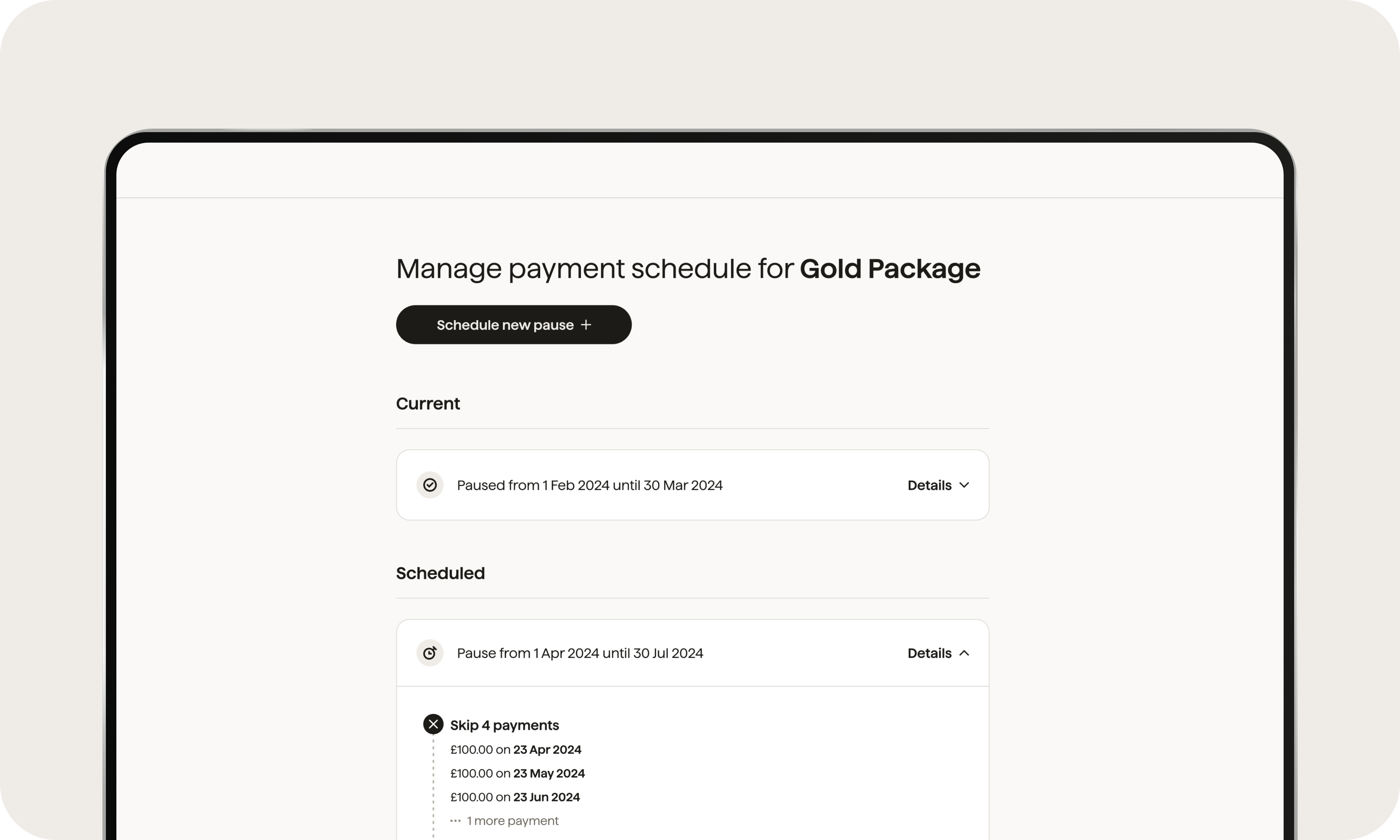 As with scheduling a pause, please note that you will not be able to resume for a charge date which is less than X days in the future, with X being your relevant scheme’s notice period (see above).