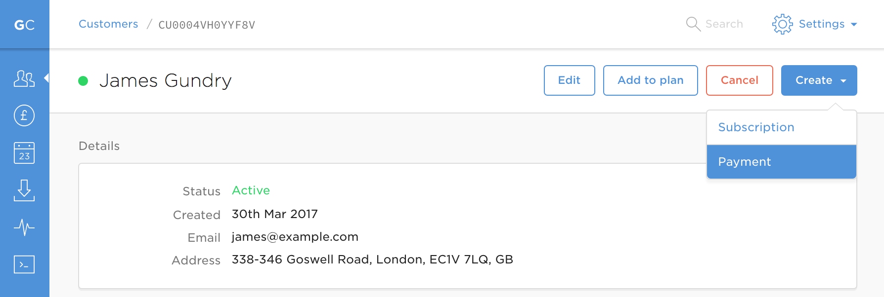 This article provides an overview of the different types of payments you can create for your customers via the GoCardless dashboard.