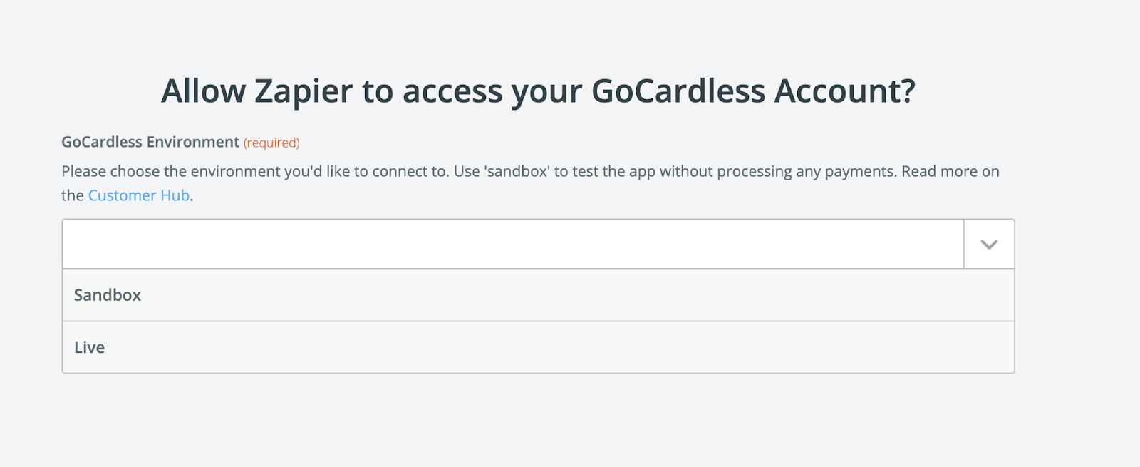 Next, Zapier will prompt you to sign in to your GoCardless account: