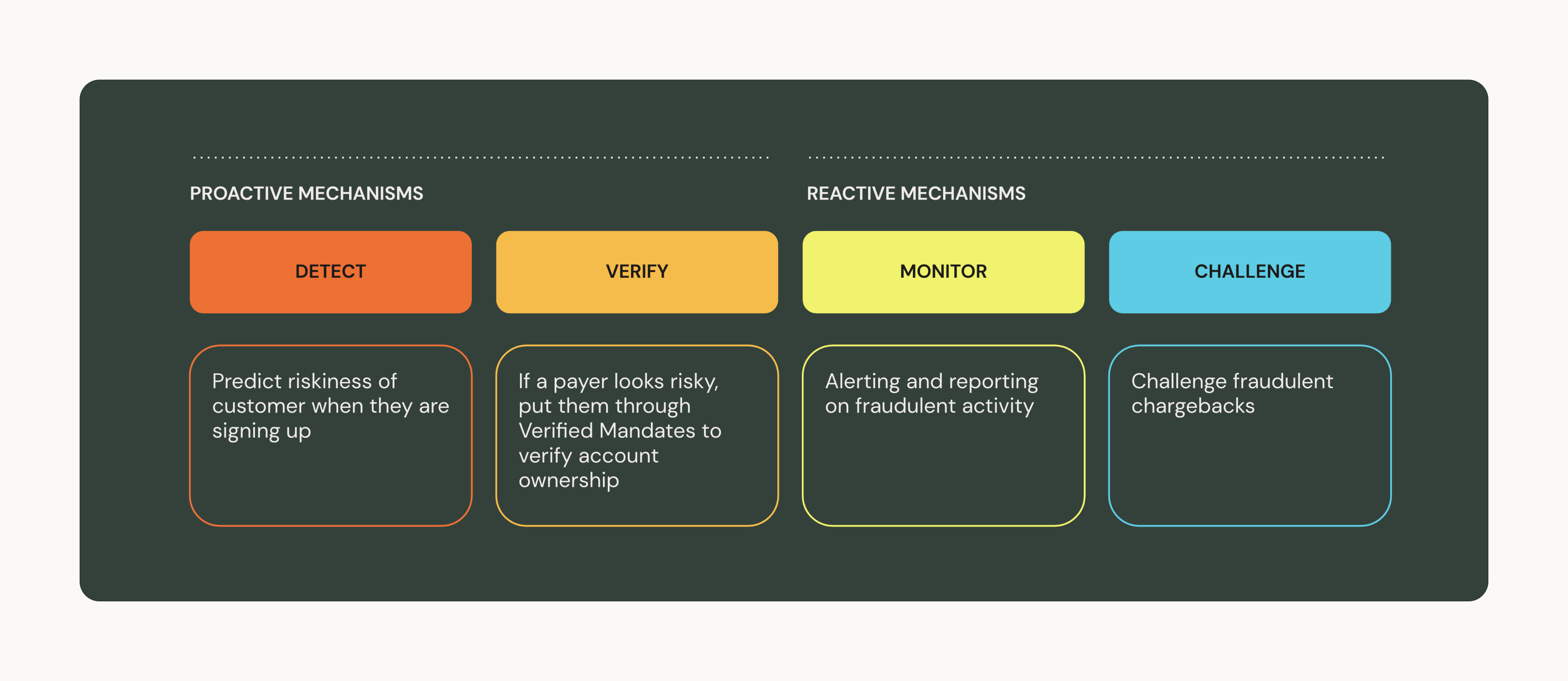 Con estos datos, Protect+ de GoCardless sigue un enfoque de cuatro fases para hacer frente a los pagadores que cometen fraude: