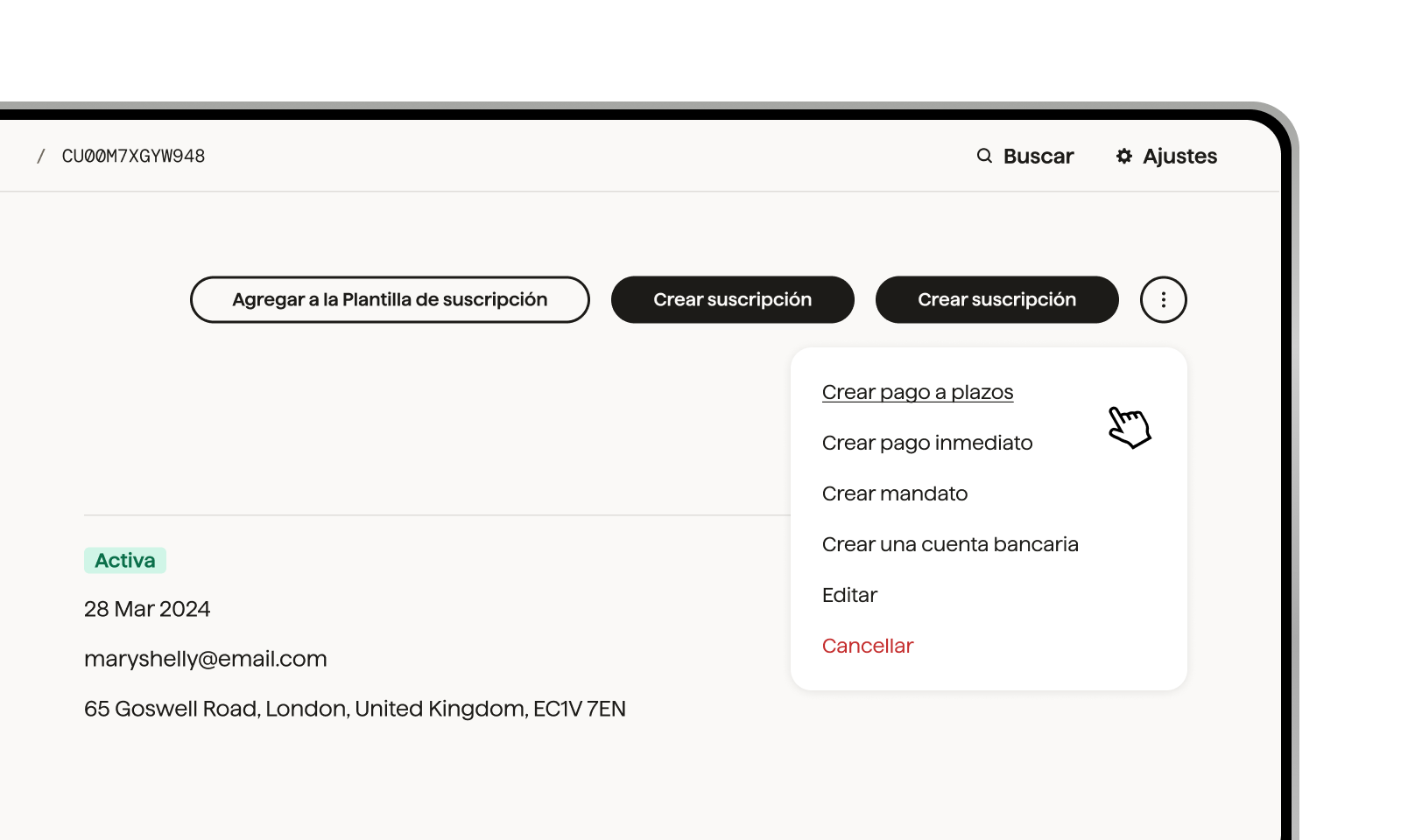 En tu panel de control puedes crear pagos a plazos fácilmente: